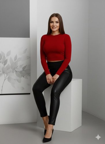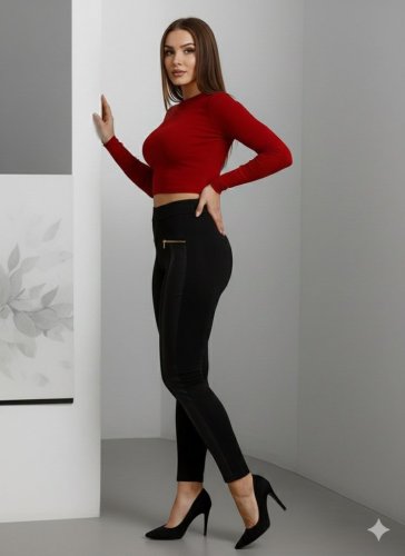 • Kadın yüksek bel deri detaylı fermuarlı dalgıç tayt